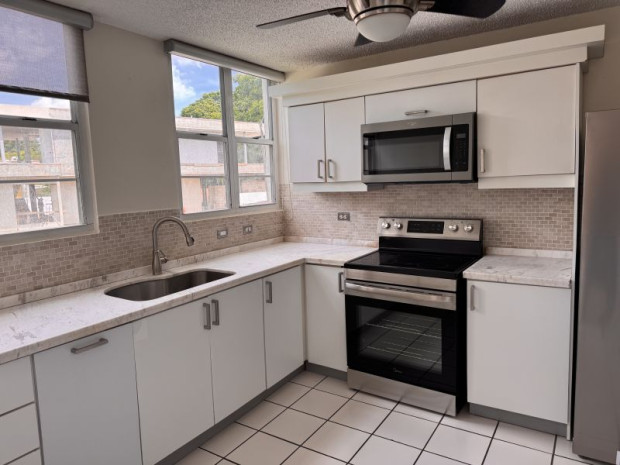 Located in the heart of Guaynabo, this penthouse apartment at Cond. Caparra Chalets offers comfort, space, and convenience. This PH features 3 bedrooms, 2.5 bathrooms, living and dining areas, and a kitchenequipped with appliances. includina a washer and arver. It also includes a large terrace. Ideal for entovina outdoor space The property offers two side-by-side parking spaces and access to amenities such as a swimming pool, gazebo, and children's park. Conveniently located near schools, restaurants, shopping centers, and main access roads.