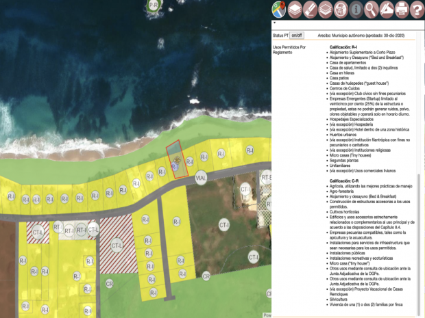 Calificación R-I (Residencial Intermedio): permite desarrollo residencial, sujeto a los permisos y reglamentos aplicables. El área combina tranquilidad con accesibilidad, rodeada de residencias existentes y proyectos orientados a la hospitalidad.